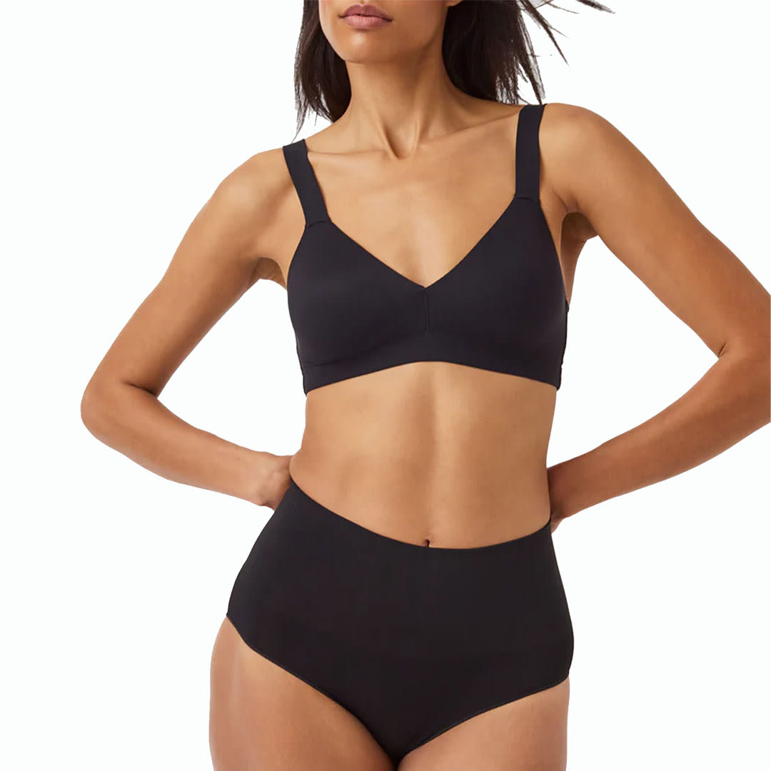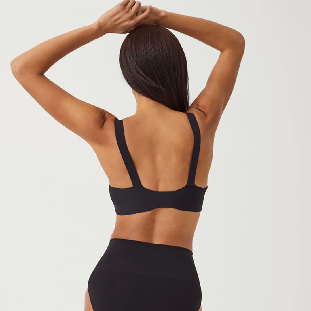 Bra-llelujah Lightly Lined Bra, featuring a convenient pull-on design with no clasps or hooks, is all about comfort. The SPANX Smart Straps® are soft, dig-free, and stay securely in place, while the patented all-hosiery back offers a smooth, seamless finish that gently streamlines your silhouette. Lightly lined cups provide soft shaping and support, and with no wires, hardware, or elastic, you’ll enjoy an irritation-free fit all day long.