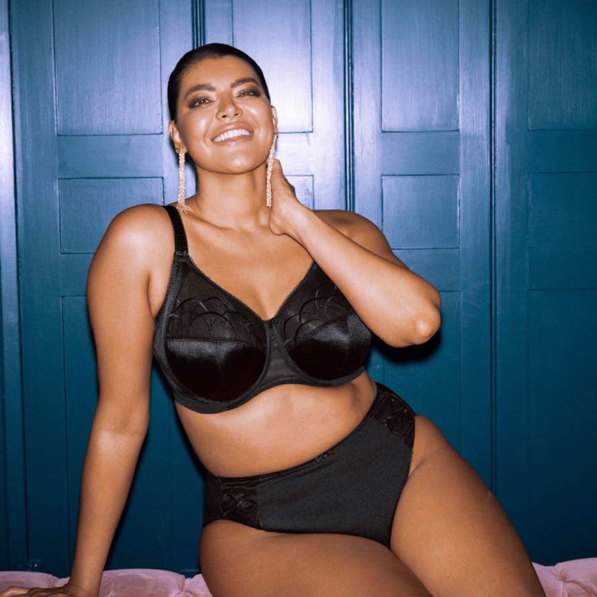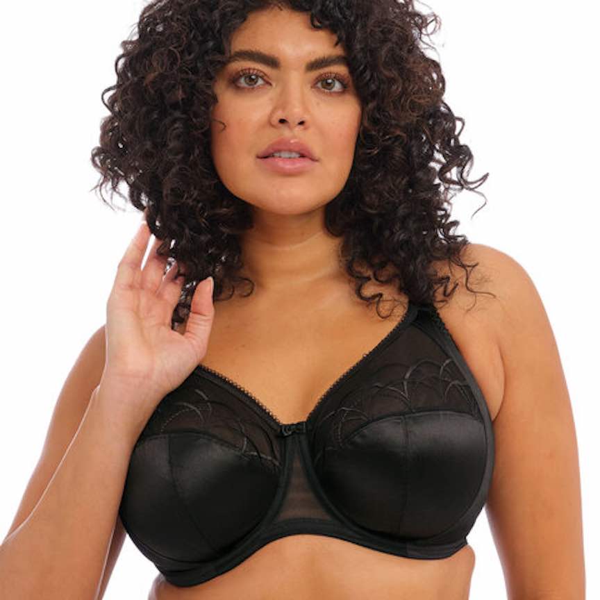 Send out all the right signals with our stylish Caitlyn rang, finished with the finest Austrian embroidery. Featuring contemporary shapes on a satin simplex base, this ultra supportive and vivacious collection is available right through to a HH cup and 46 back. Full cup bra with side sling design provides maximum lift and shaping. Sheer embroidered top cup featuring contemporary shapes offers a light appearance. Restricted stretch straps for comfortable all day support.