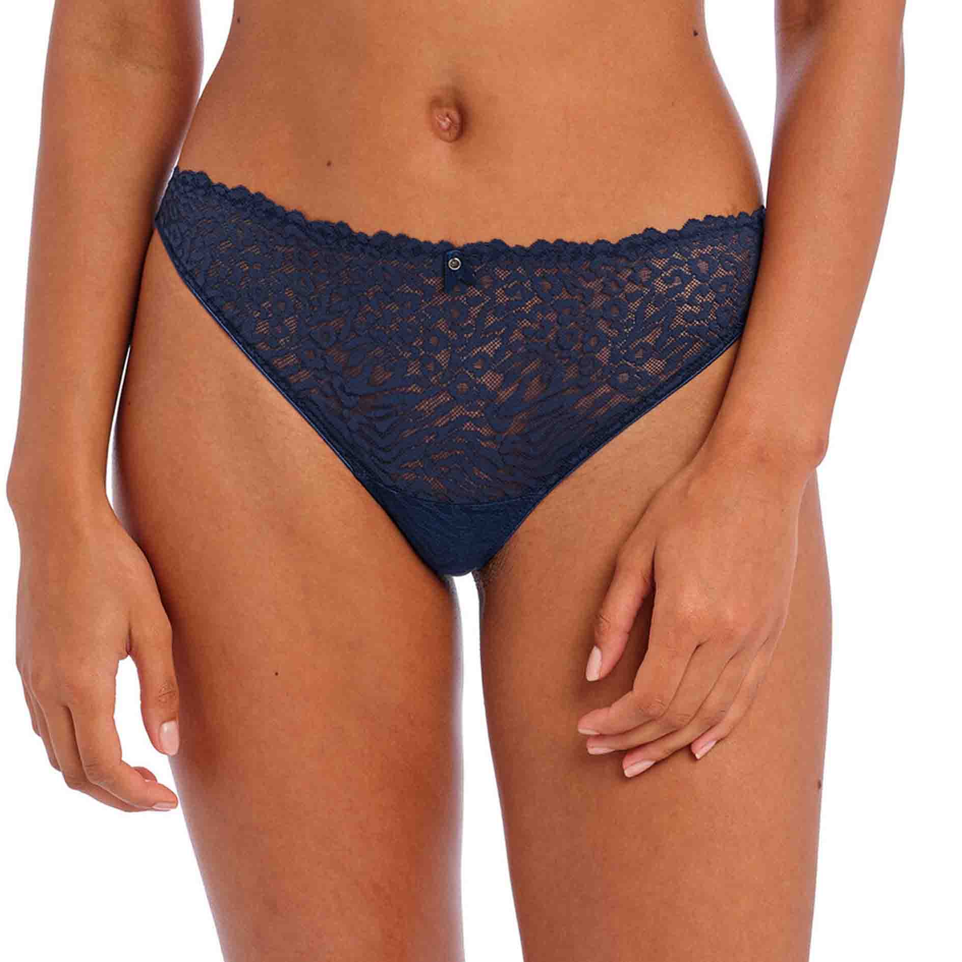 The Catwalk Brazilian has a stretch lace front and back with a smooth scallop edge finish for no VPL.