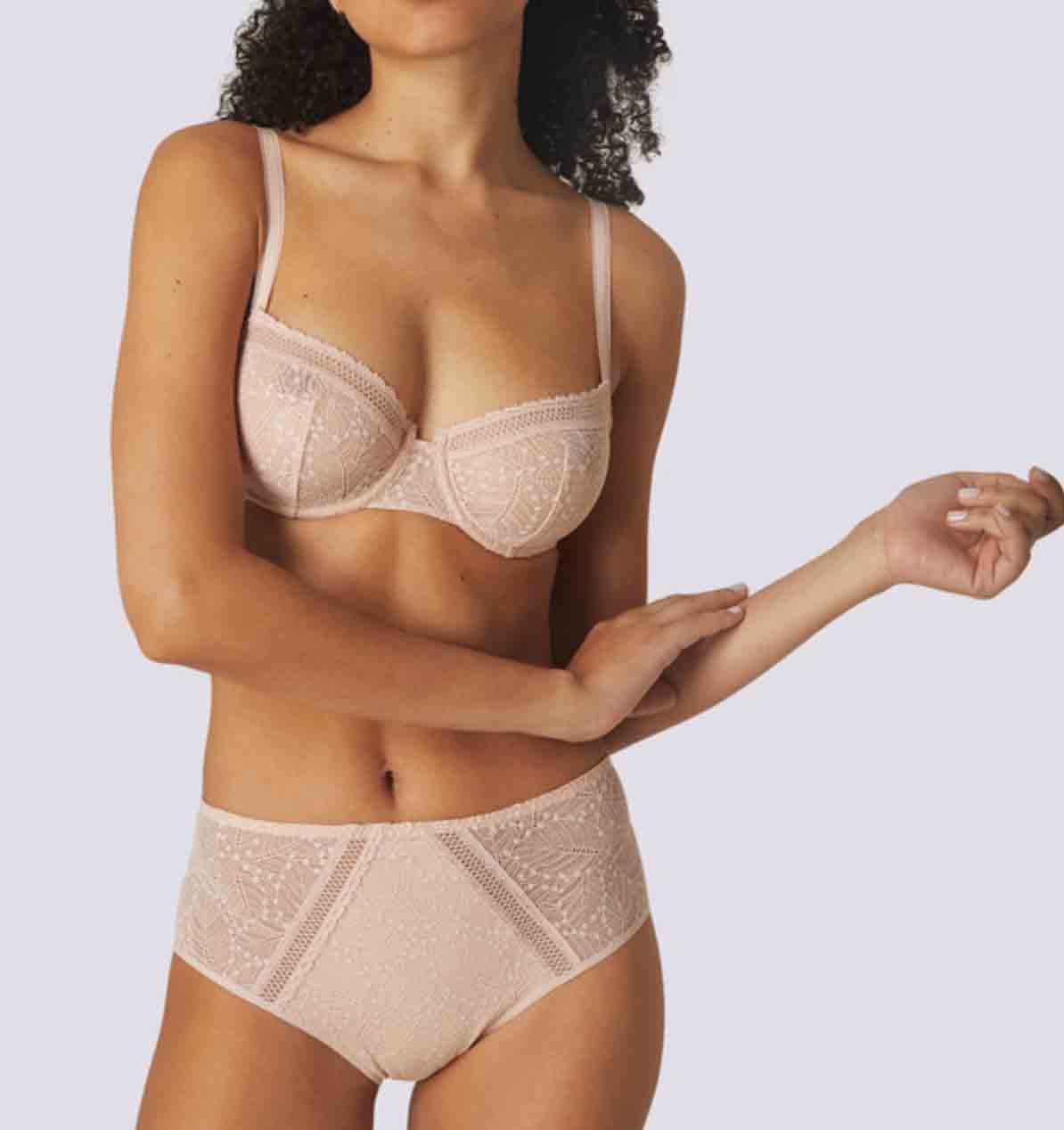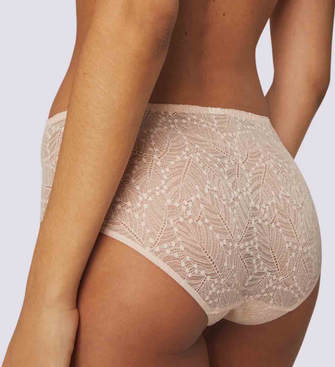 The superfine, flat binding across the thigh ensures the invisibility of Comete Culotte under clothing. The cotton-lined front is finished with delicate bobbin lacework. And the overall shape works to flatten the stomach while ensuring there’s no ride up or roll. It’s strong but delicate and comfortable.