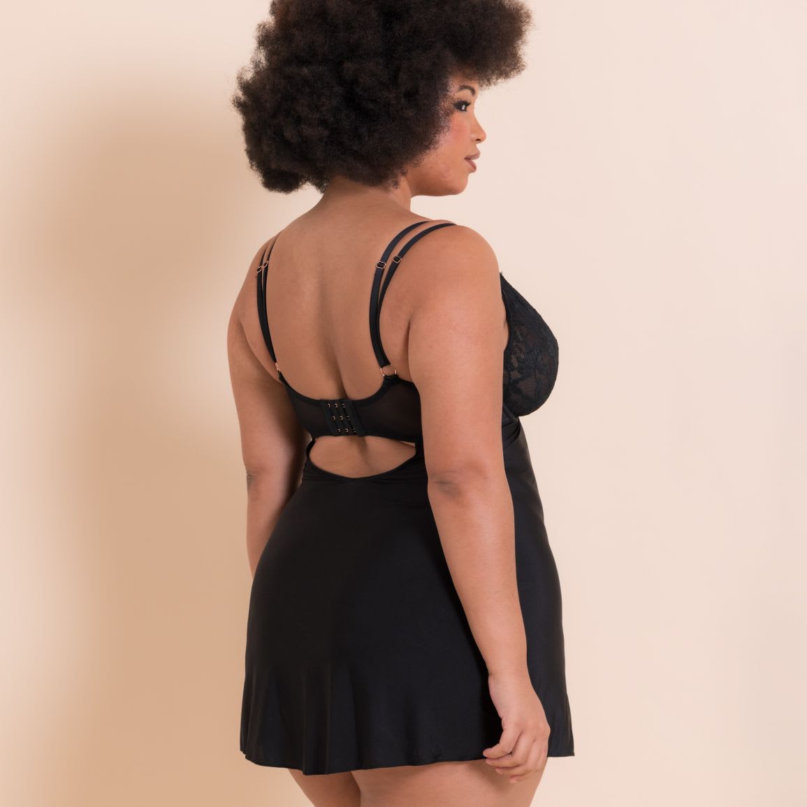 Indulge in playful sophistication with our Embrace wired plunge Chemise. Elegant lace details combined with buttery soft microfibre make this the ultimate seductive nightwear piece. Stretch chemise with lace detail cups.