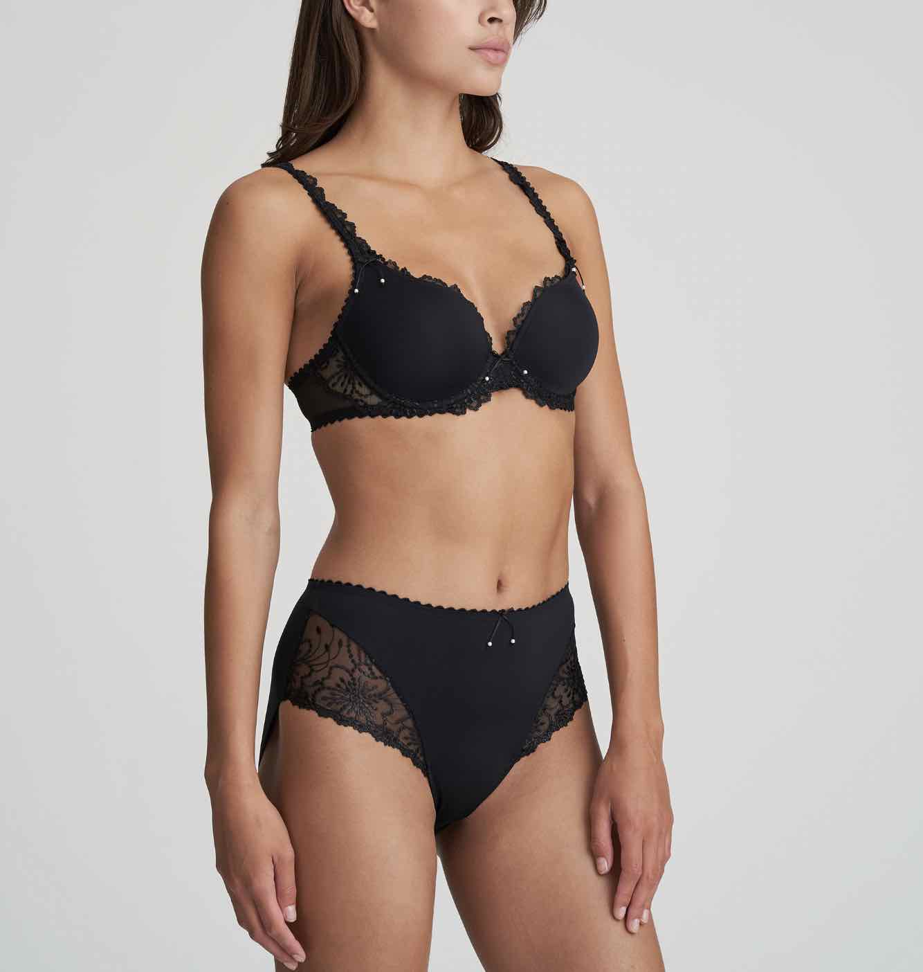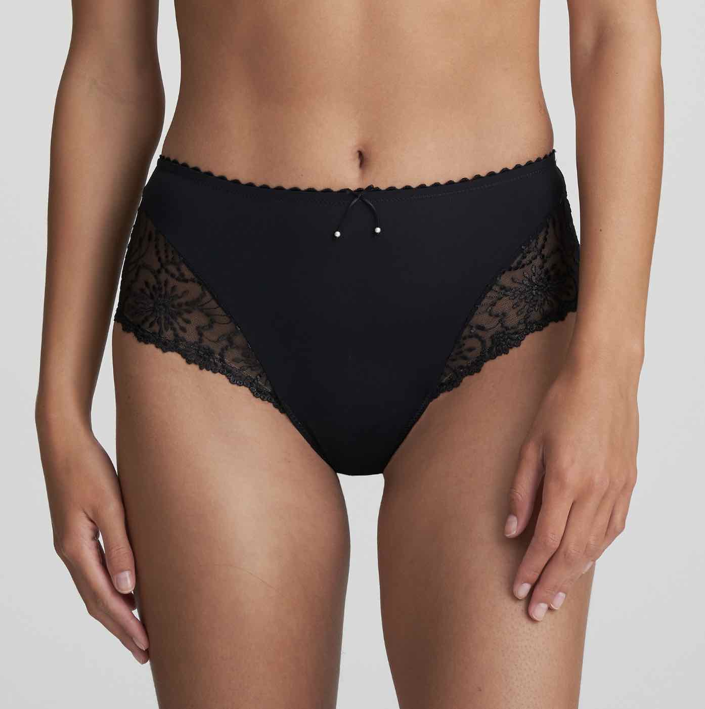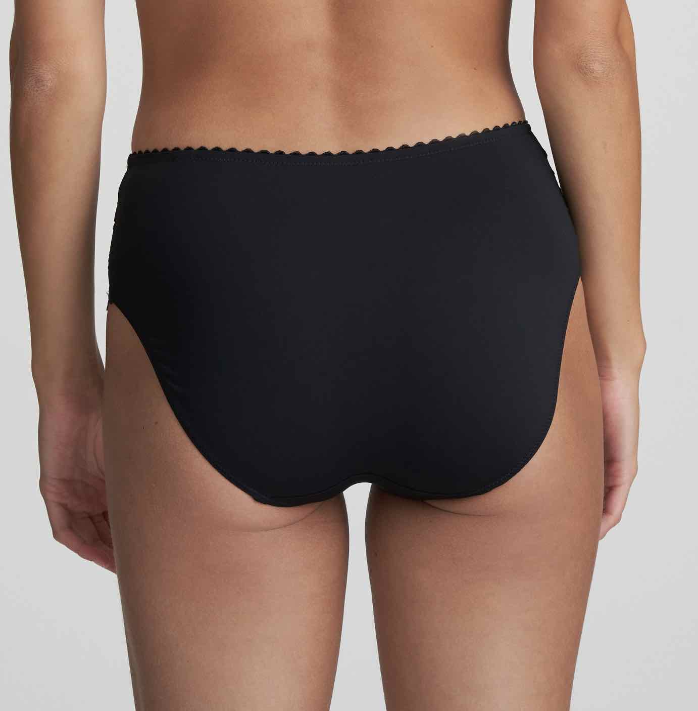 Experience luxurious comfort and elegance with the Jane range by Marie Jo. This high-waisted brief is designed for a sensual and smooth wear throughout the day. The clean finished main fabric feels light and smooth against your skin, making it perfect for wearing under any clothing. The high-rise waist provides complete coverage and confidence, while the full rear coverage ensures comfort and security. The legs are adorned with semi-sheer fabric and shimmery floral embroidery details, finished with scalloped edges for an extra touch of elegance. Perfect for those seeking comfort with a hint of sophistication. Pair with matching coordinates from the Jane range to complete the look.