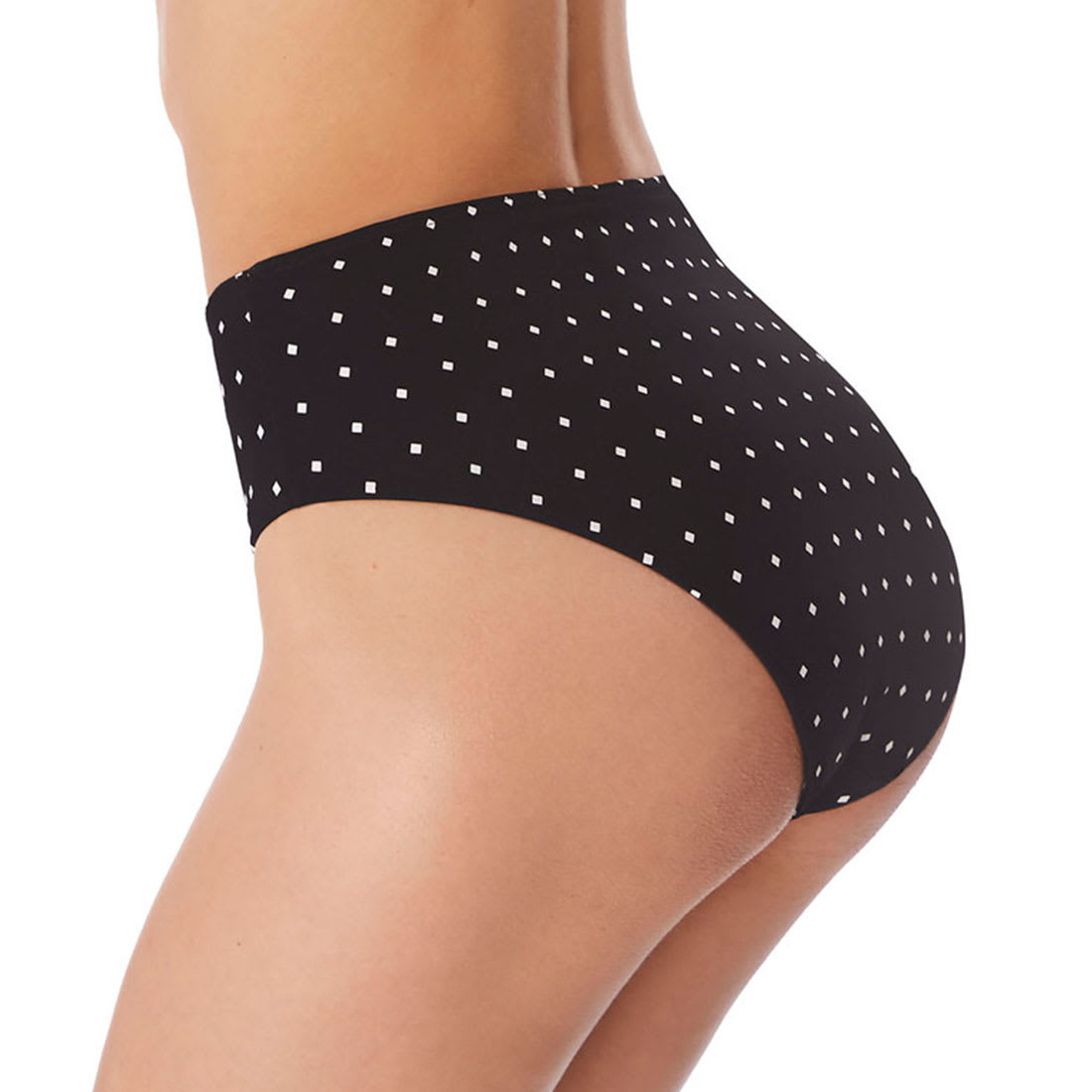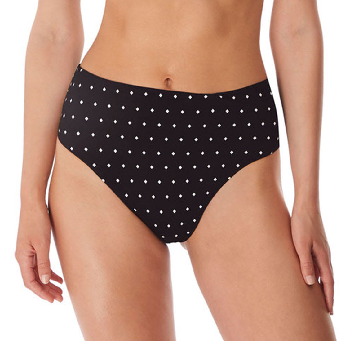 Freya’s Jewel Cove High Waist Bikini Brief offers a chic poolside look with a monochrome diamond print. The classic shape features a high waist and scooped leg line for a flattering fit