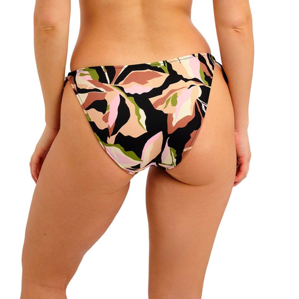 This style sits low on the hips with narrow, adjustable sides for a customizable fit, providing medium bottom coverage. Brown stone-effect beads and decorative gold-coloured trim on the end ties add a subtle touch of elegance.