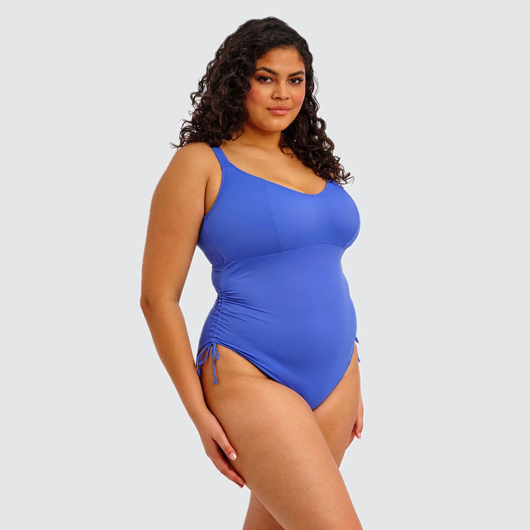 Designed without moulded cups for a lighter, less structured shape, the Plain Sailing Non Wired Swimsuit features a supportive suspended shelf within a wide underband, a clasp fastening with a low scoop keyhole back for easy dressing, adjustable sides for customizable coverage, lightweight LYCRA® XTRA LIFE™ fabric, and adjustable shoulder straps for the perfect fit.