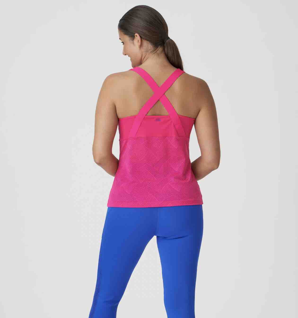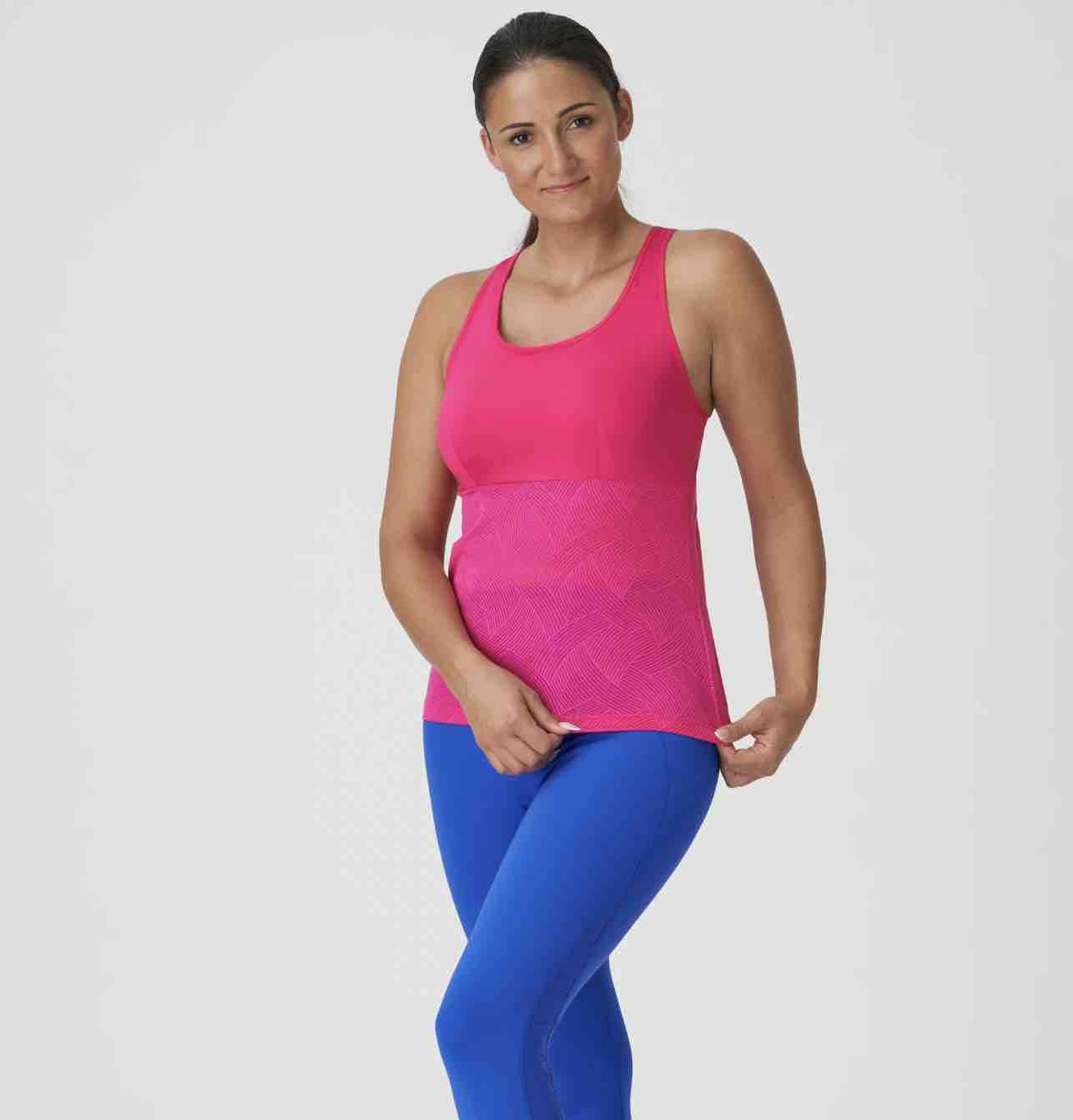 The Game Tank Top is a racerback top with non-adjustable straps and an easy pull-on design. The upper section is made from an opaque fabric with a fitted feel that creates a streamlined silhouette while the bottom section features a subtle print. Breathable fabric wicks away perspiration so your skin remains cool.